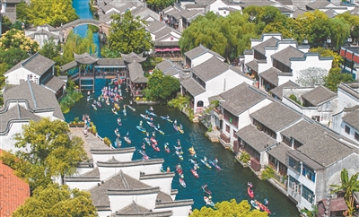 6月21日,2025年第七屆南潯古鎮(zhèn)槳板公開賽在浙江省湖州市南潯古鎮(zhèn)景區(qū)舉行,來自各地的眾多選手參與競(jìng)技角逐。在粉墻黛瓦的江南古鎮(zhèn)小橋流水間奮力揮槳逐浪,上演“速度與激情”,呈現(xiàn)出一場(chǎng)精彩絕倫的水上運(yùn)動(dòng)盛會(huì)。計(jì)海新 攝