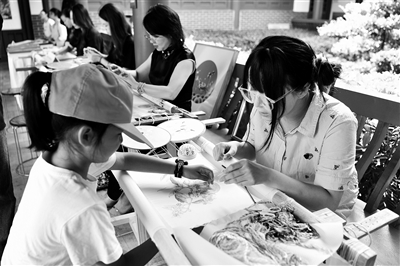 6月22日,湖北省宜昌市夷陵區(qū)小溪塔街道官莊村在文化廣場(chǎng)設(shè)立非遺漢繡體驗(yàn)區(qū),現(xiàn)場(chǎng)傳揚(yáng)漢繡文化。張國榮 攝