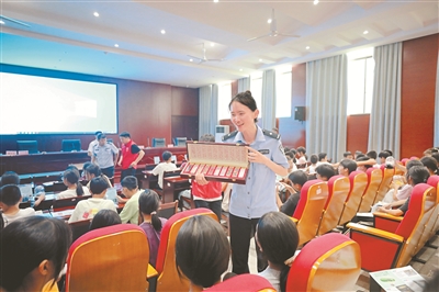 6月18日,江西省吉安市峽江縣巴邱派出所走進轄區(qū)各中小學(xué)校開展“禁毒宣傳進校園”活動,通過發(fā)放宣傳資料、講解禁毒知識、展示仿真毒品樣品等形式,讓學(xué)生認識到毒品的危害,引導(dǎo)學(xué)生珍愛生命、遠離毒品。圖為民警用仿真毒品樣品向?qū)W生講解毒品的識別等知識。王文軍 宋靖輝 攝