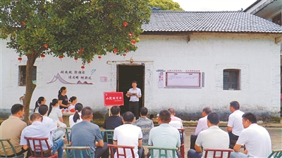 為推動理論宣講滲透到基層“毛細血管”,江西省吉安市峽江縣戈坪鄉(xiāng)創(chuàng)新黨課形式,打造“小院微黨課”,讓黨員教育廣覆蓋、常態(tài)化。圖為7月1日,戈坪鄉(xiāng)黨員干部在舍龍村“鄰里小院”給黨員、群眾上黨課。