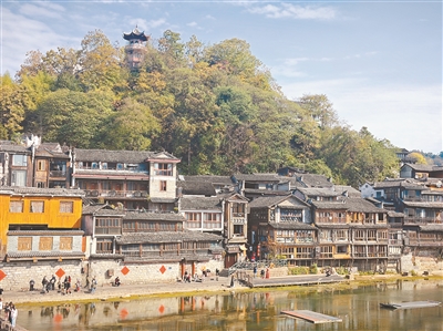 在湖南省湘西土家族苗族自治州鳳凰古城,文化是最強(qiáng)的“引流”招數(shù)。鳳凰古城因沈從文的《邊城》而被人們所熟知。根據(jù)沈從文文學(xué)作品改編的實(shí)景劇《邊城》、室內(nèi)實(shí)景互動(dòng)演藝《鳳凰樣子》、沉浸式游船夜游體驗(yàn)項(xiàng)目“湘見·沱江”,讓游客盡享“詩(shī)和遠(yuǎn)方”?!皝砜囱莩龅挠慰徒j(luò)繹不絕,我的民宿生意也越來越好。”鳳凰古城民宿老板李昱明說。