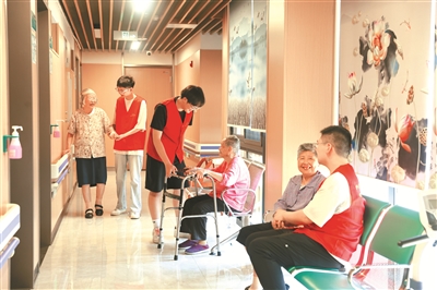 7月4日,青年醫(yī)學(xué)生志愿者來到浙江省湖州市德清縣乾元鎮(zhèn)德馨醫(yī)康養(yǎng)中心,為老人們測量血壓、指導(dǎo)鍛煉身體、講解高溫天養(yǎng)生知識,豐富暑假生活。圖為志愿者和老年人拉家常,傳授高溫防護(hù)知識。