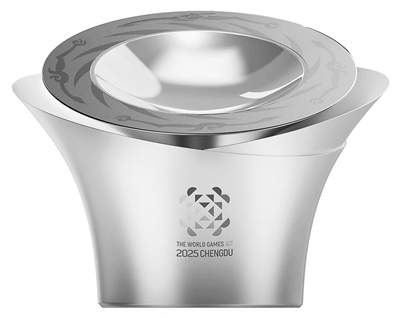火種盆整體造型創(chuàng)意靈感來自三星堆遺址出土的銅圓尊?!盎鸱N盆上有3個(gè)時(shí)間刻度,體現(xiàn)了成都平原古蜀文化時(shí)期3種文物的特點(diǎn)?!碧祈嫡f,火種盆上的寶墩文化的稻穗紋,不僅是陶器紋飾,更是成都平原“天府糧倉(cāng)”的起源;三星堆標(biāo)志性的眼睛紋飾,凝視著金沙太陽(yáng)神鳥在盆底綻放金光;4只神鳥環(huán)繞旋轉(zhuǎn)的太陽(yáng),如運(yùn)動(dòng)員圍繞圣火奔跑,將古蜀先民對(duì)光明的崇拜與當(dāng)代體育精神完美融合。