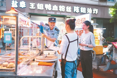 在夜市的熙攘中,北城派出所巡邏民警走到一個美食攤位前,提醒攤主注意液化氣的使用安全,并仔細(xì)檢查了攤位旁的滅火器材。攤位老板表示,有了他們的每日巡查,夜市的安全有了堅實(shí)保障,大家都能安心經(jīng)營、愉快消費(fèi)。