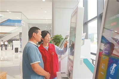 川渝高竹新區(qū)政務(wù)服務(wù)中心新時(shí)代文明實(shí)踐點(diǎn),志愿者幫助群眾查詢醫(yī)保信息。漆世平 攝