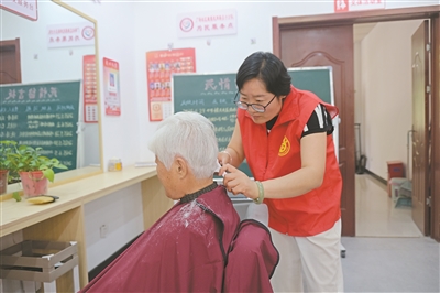 居民在江蘇省徐州市賈汪區(qū)老礦街道廣場社區(qū)光明小區(qū)新時(shí)代文明實(shí)踐點(diǎn)理發(fā)。漆世平 攝