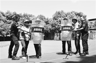 為全面提升轄區(qū)校園安防水平,近日,湖南省永州市江永縣公安局、消防救援大隊(duì)聯(lián)合開(kāi)展暑期校園保安技能培訓(xùn),進(jìn)行防暴、應(yīng)急逃生實(shí)際操作演練。圖為消防實(shí)操培訓(xùn)現(xiàn)場(chǎng)。田如瑞 攝
