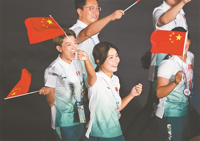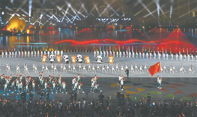 中國體育代表團(tuán)入場。 (圖據(jù)新華社)