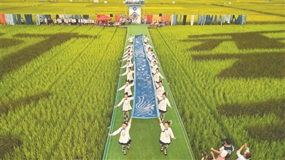 近日,貴州省黔東南苗族侗族自治州榕江縣古州鎮(zhèn)在車江大壩田園風光舉辦“村秀・繡未來”主題活動,當?shù)卮迕裆碇⒀b參加走秀,展示她們的刺繡工藝、紡織技藝、藍染制作等絢麗多彩的民族文化。圖為“村秀”活動現(xiàn)場。李長華 攝