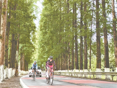 近日,幾名騎行愛好者在浙江省開化縣桃下線星口路段騎行。近年來,開化縣始終注重公路的綠化美化工作,經(jīng)過公路養(yǎng)護(hù)人員40多年的精心養(yǎng)護(hù)和管理,縣內(nèi)不少路段兩旁的行道樹已高聳入云,在炎炎夏日為路人增添清涼。
