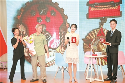 邀請(qǐng)離休干部謝臘英(左二)登臺(tái)講述從昆明部隊(duì)來(lái)到青白江參與三線建設(shè)的經(jīng)歷。