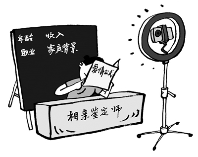 如今,一些社交平臺出現(xiàn)標(biāo)注“相親鑒定師”的直播間。主播以“婚戀軍師”自居,分析前來相親對象的條件、評估用戶的“婚戀競爭力”,受到不少網(wǎng)友追捧。有專家表示,愛情與婚姻無法也不該用條件量化,更不能套用公式。與其花錢讓別人“鑒定”幸福,不如相信自己感知與把握幸福的能力。王懷申 文/圖