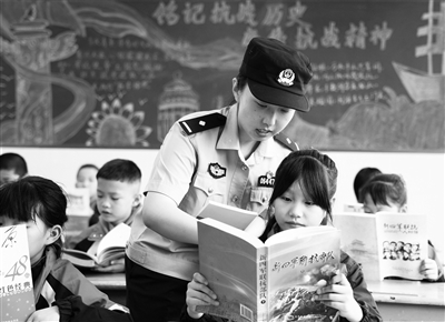 9月1日,江蘇省海安市公安局墩頭派出所民警走進(jìn)吉慶小學(xué),以講述抗日故事、閱讀抗戰(zhàn)書籍等方式,引導(dǎo)學(xué)生在紅色教育中厚植愛(ài)國(guó)情懷,點(diǎn)亮開(kāi)學(xué)第一課。圖為民警在指導(dǎo)學(xué)生閱讀紅色書籍。周強(qiáng) 攝