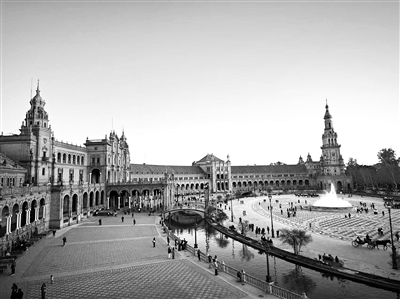 西班牙塞維利亞的西班牙廣場是1929年為伊比利亞-美洲博覽會而建的建筑群,由建筑師阿尼巴爾·岡薩雷斯設計。它以其巨大的半圓形造型(直徑200米)、環(huán)繞的護城河與精致橋梁以及飾有代表西班牙各省瓷磚畫的弧形紅磚建筑著稱,融合了新文藝復興與摩爾復興建筑風格,被譽為西班牙最美麗的廣場之一,為游客免費開放。李芷馨 攝
