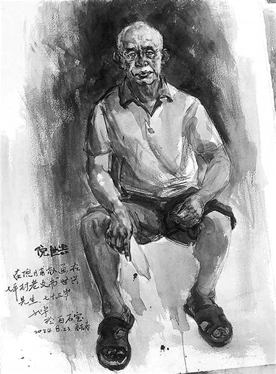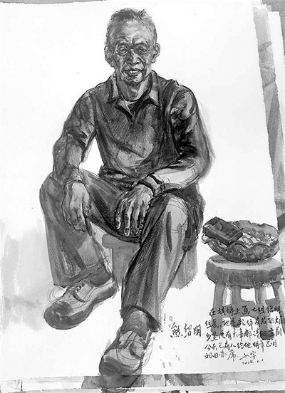今年,孔宇來到劉正福家中拜訪。老劉笑盈盈地搬來一把竹椅,端坐在院子里,欣然為孔宇當(dāng)起了模特,于是便有了這幅生動(dòng)的人物畫。后來,孔宇還將畫作的復(fù)印版本贈(zèng)送給老人,老人一直將它珍藏在堂屋的抽屜里。