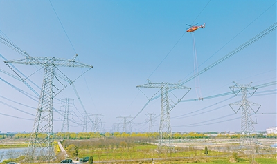國(guó)網(wǎng)湖州供電公司開(kāi)展特高壓直升機(jī)帶電作業(yè)。沈世昀 攝