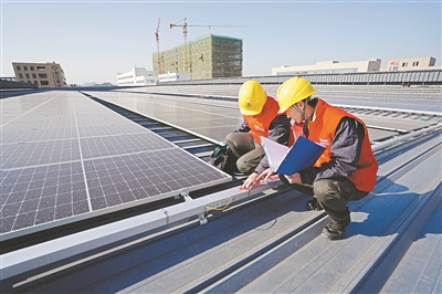 國(guó)網(wǎng)湖州供電公司工作人員到光伏企業(yè)開(kāi)展巡視工作。陳妍宏 攝