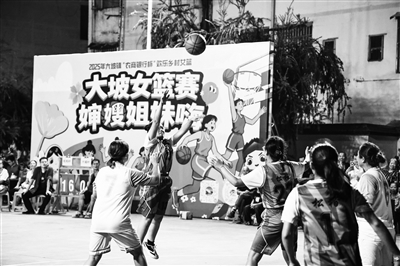 10月15日晚,在廣西梧州市龍圩區(qū)大坡鎮(zhèn)鎮(zhèn)政府球場,龍圩區(qū)歡樂鄉(xiāng)村女籃大坡鎮(zhèn)賽區(qū)比賽展開激烈角逐。村與村、鎮(zhèn)與鎮(zhèn)之間的女籃賽,旨在推動群眾體育事業(yè)發(fā)展,推動文體旅商融合,打造草根籃球文旅盛宴。圖為籃球賽比賽現(xiàn)場。顏金昌 攝
