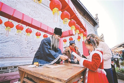 四川省成都市洛帶古鎮(zhèn)NPC與游客互動。 洛帶古鎮(zhèn)景區(qū)管委會供圖