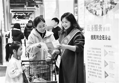 為進(jìn)一步優(yōu)化營商環(huán)境,河北省邯鄲市永年區(qū)政務(wù)服務(wù)中心以“高效辦成一件事”為重要抓手,聚焦企業(yè)和群眾需求,積極開展政務(wù)服務(wù)進(jìn)商圈活動,定期將高效便捷的政務(wù)服務(wù)融入百姓生活圈,圍繞企業(yè)開辦、不動產(chǎn)登記、醫(yī)保、社保、就業(yè)等高頻事項,為辦事企業(yè)、群眾提供政策咨詢、網(wǎng)上申報、全流程跟蹤等服務(wù),提升企業(yè)和群眾辦事便利度和滿意度。圖為11月23日的活動中,工作人員正在向居民講解醫(yī)保政策。