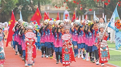 11月17日,貴州省黔東南苗族侗族自治州榕江縣古州鎮(zhèn)中心校舉行冬運會開幕式,多姿多彩、創(chuàng)意紛呈的入場表演,展現(xiàn)出多元活力的校園文化。近年來,榕江縣各中小學(xué)校認(rèn)真抓好學(xué)生“德智體美勞”全面發(fā)展教育,通過定期舉辦體育運動會、藝術(shù)節(jié)等活動,讓孩子們在校園中綻放靚麗風(fēng)采。 周光勝 攝
