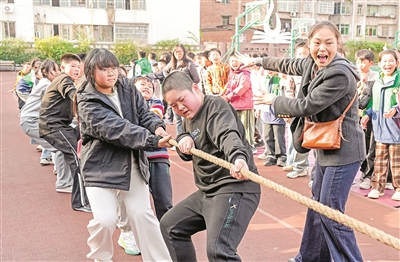 11月24日,四川省華鎣市雙河小學(xué)的學(xué)生利用課間10分鐘開展拔河運動。冬季來臨,雙河小學(xué)充分利用課間10分鐘,組織學(xué)生到室外參加拔河、跳繩、玩球和“老鷹捉小雞”等健康、有趣的文體活動,讓學(xué)生放松在課堂上繃緊的神經(jīng),緩解學(xué)習(xí)壓力,抵御寒冷,促進(jìn)身心健康。 邱海鷹 劉南賢 攝