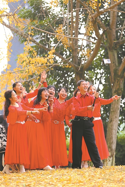 近年來,四川省樂山市不斷提升城市綠化管理水平,在公園、道路、小區(qū)等地,各類綠植隨著四季更替,為城市裝扮出不一樣的美,讓市民樂享美好生活環(huán)境。圖為12月9日,該市新廣場石榴籽家園內(nèi)銀杏樹一片金黃,吸引眾多市民和游客前來游玩。李華時 攝