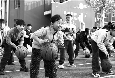 近年來(lái),河南省商丘市夏邑縣育才學(xué)校開(kāi)展學(xué)生體育素養(yǎng)提升行動(dòng),排練課間籃球操,推動(dòng)學(xué)生全員參與籃球運(yùn)動(dòng),讓學(xué)生在快樂(lè)的運(yùn)動(dòng)中增強(qiáng)體質(zhì)、健康成長(zhǎng)。圖為12月8日,小學(xué)生在練習(xí)課間籃球操。