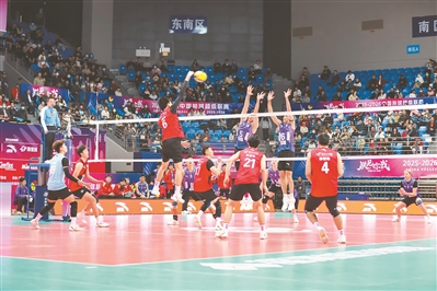 近年來(lái),福建省福清市持續(xù)完善健身設(shè)施布局,推動(dòng)群眾體育與文旅產(chǎn)業(yè)深度融合,讓體育融入民生、賦能發(fā)展。截至今年11月,全市體育場(chǎng)地面積達(dá)452萬(wàn)平方米,人均3.2平方米,“10—15分鐘體育健身圈”全面建成,濃厚的體育氛圍與完善的設(shè)施條件,為國(guó)家級(jí)排球賽事的落地,奠定了堅(jiān)實(shí)基礎(chǔ)。圖為12月14日,2025—2026中國(guó)男子排球超級(jí)聯(lián)賽常規(guī)賽B級(jí)第一輪比賽在福清市體育館舉行。謝貴明 攝