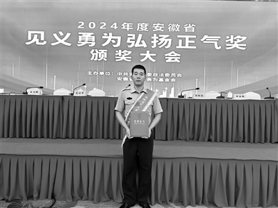 王濤被授予“安徽省見(jiàn)義勇為弘揚(yáng)正氣獎(jiǎng)”。