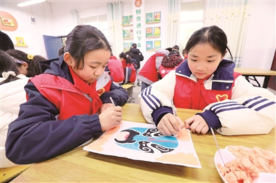 近年來,湖北省竹山縣寶豐鎮(zhèn)紅衛(wèi)小學將紙漿畫這項傳統(tǒng)技藝創(chuàng)新性地引入課堂,讓其成為“相守計劃”主題繪畫活動、課后服務社團的重要組成部分。圖為12月15日,在紅衛(wèi)小學的紙漿畫工作坊里,學生們正專注地創(chuàng)作著京劇臉譜紙漿畫。