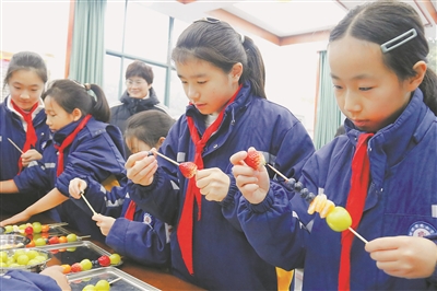 12月24日,浙江省湖州市吳興區(qū)戴山學校的餐廳里,學生們在老師的指導下制作傳統(tǒng)美食糖葫蘆。大家串果、熬糖、蘸糖、冷卻,在勞動中傳承民俗,在甜蜜中感受暖意。圖為學生們在制作糖葫蘆。金新林 攝