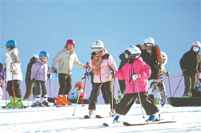12月24日至28日,內(nèi)蒙古自治區(qū)呼倫貝爾市為當?shù)亓x務教育階段1至8年級學生放首個“雪假”,讓廣大中小學生在“雪假”期間感受冰雪魅力、傳承冰雪文化、增強身體素質(zhì)。同時,呼倫貝爾市在“雪假”期間推出了一系列特色冰雪活動,以“冰雪+教育”融合模式,為當?shù)刂行W生提供兼具趣味性與知識性的假期體驗。圖為12月24日,學生們在扎蘭屯金龍山滑雪場體驗滑雪。韓穎群 攝
