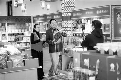 近年來,浙江省杭州市桐廬縣莪山畬族鄉(xiāng)創(chuàng)新返鄉(xiāng)青年“非遺+直播”模式,推介當(dāng)?shù)剞r(nóng)特產(chǎn)品,為家鄉(xiāng)好物打開銷路,賦能鄉(xiāng)村發(fā)展。圖為12月26日,桐廬縣莪山畬族鄉(xiāng)龍峰民族村,返鄉(xiāng)青年在直播售賣特色農(nóng)產(chǎn)品。