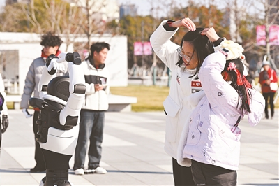 近年來,江蘇省昆山市全力打造具身智能產(chǎn)業(yè)新高地,已形成包括AI服務(wù)器、智能芯片、傳感器、智能元器件等在內(nèi)的完整產(chǎn)業(yè)鏈群。圖為1月2日,昆山市民廣場(chǎng)迎來一場(chǎng)別開生面的科技展示活動(dòng),機(jī)器人、機(jī)器狗亮相廣場(chǎng),與市民親切互動(dòng)。這些智能機(jī)器人不僅能完成精準(zhǔn)的動(dòng)作表演,還能與市民進(jìn)行手勢(shì)互動(dòng)。袁新宇 攝