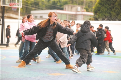 貴州省黔西市五里布依族苗族鄉(xiāng)茶林小學(xué)2002年建成投用。20多年過去了,設(shè)施逐漸陳舊,出現(xiàn)了屋面漏水等情況。2025年,當(dāng)?shù)卣o扣茶林小學(xué)基礎(chǔ)設(shè)施改造進行提案,后得益于市政協(xié)專項資金22萬元支持,對教學(xué)點進行全面改造,讓山里的孩子們安心讀書。圖為1月8日,在茶林小學(xué)教學(xué)點,老師帶領(lǐng)學(xué)生課間做游戲。 周訓(xùn)超 攝