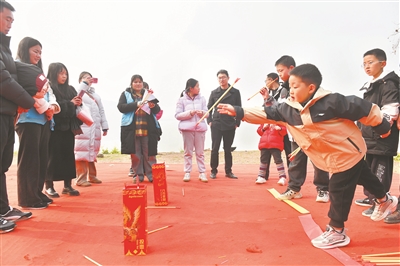 1月17日,四川省閬中市文成鎮(zhèn)嘉陵江畔的一戶農(nóng)家樂(lè)內(nèi)充滿了歡聲笑語(yǔ)。閬中市總工會(huì)打造的公益服務(wù)平臺(tái)“閬工學(xué)堂”組織70個(gè)家庭在此開(kāi)展親子活動(dòng),通過(guò)印福字、投壺、寫春聯(lián)等活動(dòng),讓家長(zhǎng)和孩子們零距離體驗(yàn)傳統(tǒng)民俗的魅力。圖為孩子們?cè)诩议L(zhǎng)的陪同下參加活動(dòng)。王玉貴 攝