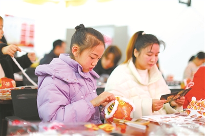 1月25日,在重慶高新區(qū)虎溪街道學(xué)成社區(qū),小朋友與家長(zhǎng)齊聚一堂,共同參與“手作吉祥獅 傳承中國(guó)年”手工活動(dòng)。活動(dòng)現(xiàn)場(chǎng),志愿者和社區(qū)工作人員生動(dòng)講解春節(jié)來(lái)歷與傳統(tǒng)習(xí)俗。圖為小朋友和家長(zhǎng)一起做吉祥獅。孫凱芳 攝