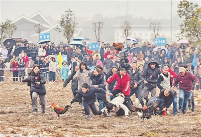 重慶市豐都縣包鸞鎮(zhèn)鄉(xiāng)村趣味運(yùn)動(dòng)會(huì)2月7日在花地堡村舉辦。挑糧接力、趕鵝捉雞、徒手抓豬等鄉(xiāng)土趣味項(xiàng)目輪番上陣,村民和游客在趣味競(jìng)技中感受濃濃的家鄉(xiāng)年味與新春喜悅。圖為趣味運(yùn)動(dòng)會(huì)活動(dòng)現(xiàn)場(chǎng)。熊波 攝