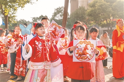 圖1:孩子們身穿漢服巡游。(南京江北新區(qū)葛塘街道新時代文明實(shí)踐所供圖)