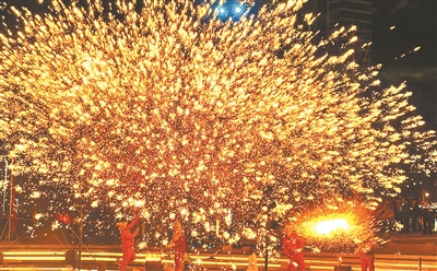 圖3:洛陽非遺融合傳統(tǒng)民俗展演活動上的打鐵花表演。