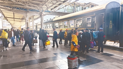 13時20分,列車停靠在西昌站,大批乘客涌上站臺,有序排隊(duì)等候上車。