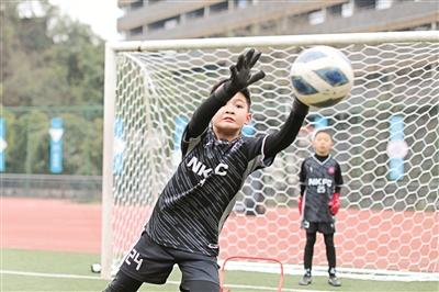 重慶各地的學生來到運動館、戶外運動場參加各類體育項目。圖為寒假中,沙坪壩區(qū)融匯沙坪壩小學的學生參加足球訓(xùn)練。孫凱芳 攝