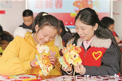 寒假期間,江蘇省海安市墩頭鎮(zhèn)開展寒假公益課堂愛心托管服務(wù)。孩子們在墩頭鎮(zhèn)新時代文明實踐站里接受志愿者輔導(dǎo)作業(yè),學習手工制作、安全知識、文藝表演等。圖為2月12日,在海安市墩頭鎮(zhèn)新時代文明實踐站,孩子們學習制作新年飾品。周強 攝