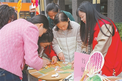 場(chǎng)內(nèi)暖意融融,場(chǎng)外廣場(chǎng)上,志愿服務(wù)集市里人頭攢動(dòng),心肺復(fù)蘇學(xué)習(xí)、竹編團(tuán)扇制作、地鐵文明出行小游戲……11個(gè)志愿服務(wù)展位前,志愿者忙忙碌碌,體驗(yàn)小游戲的市民笑容滿面。