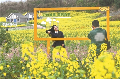 近年來,四川省內(nèi)江市市中區(qū)因地制宜,在城市近郊大力發(fā)展“賞花經(jīng)濟(jì)”,推動特色農(nóng)業(yè)、研學(xué)旅行、旅游觀光等多種業(yè)態(tài)融合發(fā)展,吸引不少游客前來觀光游覽。圖為3月1日,游客在油菜花田中賞花拍照。蘭自濤 攝
