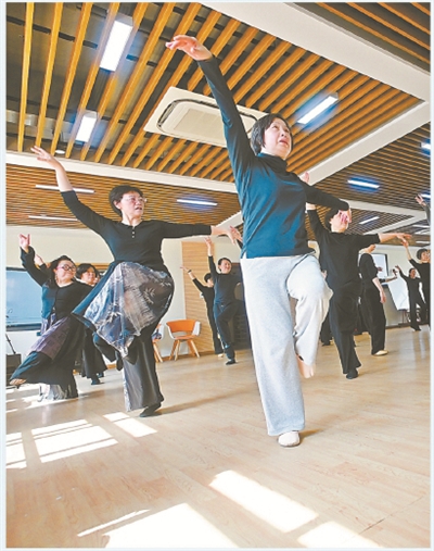 形體班學(xué)員正在學(xué)跳古典舞。徐瑞哲 攝