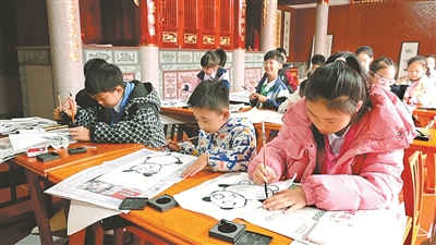 龍門村“長夏厝”宗祠化身長夏書院,孩子們假期來到書院學畫畫。(泉州市委文明辦供圖)
