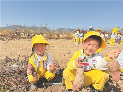 近日,云南省大理市鳳儀鎮(zhèn)各學(xué)校、幼兒園組織師生開(kāi)展春季研學(xué)活動(dòng),將課堂搬進(jìn)大自然,通過(guò)徒步參觀、種植采摘、趣味游戲等多樣化實(shí)踐活動(dòng),豐富學(xué)生生活體驗(yàn),拓展自然認(rèn)知能力。圖為3月27日,鳳儀鎮(zhèn)德尚幼兒園的小朋友在研學(xué)基地挖紅薯。楊進(jìn)軍 攝