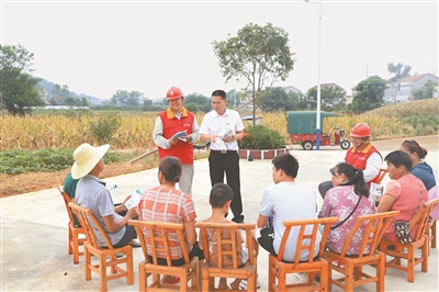 圖①:國網湖南電力(電騾子)東方紅共產黨員服務隊隊員向群眾宣講黨的創(chuàng)新理論。(國網湖南電力供圖)